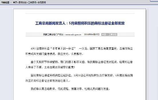 ? 4月7日媒體刊登“半年拿不到一張證”?一文后,國家工商總局高度重視,總局領導立即責成有關部門查清情況,回應關切,認真整改。