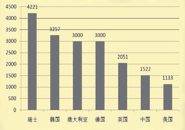 圖7:2014年主要國家每千億美元商標(biāo)申請量?單位:件;