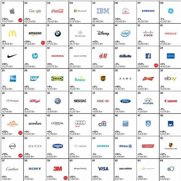 全球最具價值品牌前十位排名:
