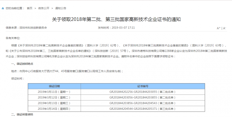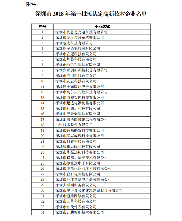 各有關(guān)單位: 根據(jù)《關(guān)于深圳市2018年第二批高新技術(shù)企業(yè)備案的復函》(國科火字〔2019〕62號)、《關(guān)于深圳市2018年第三批高新技術(shù)企業(yè)備案的復函》(國科火字〔2019…