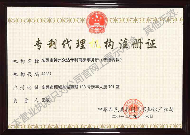 專利代理機(jī)構(gòu)證 -